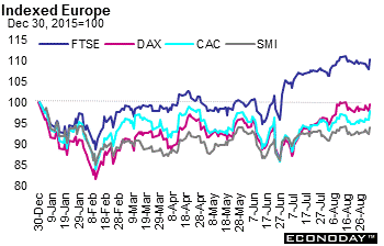 Most analysts assumed that August's report would not be a repeat of July's employment gain which was revised to 275,000 from 255,000. However, the 151,000 increase was below expectations. The report sent equities in Europe and the U.S. higher while the U.S. currency dropped and then rallied to end higher on the day. Friday's gains sent both U.S. and European stocks higher for the week. For market players the lower than anticipated employment increase means that the Fed is likely to defer increasing rates until later in the year.