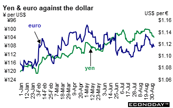 July household spending declined a less than anticipated 0.5 percent on the year – forecasts were for a 0.9 percent drop. This was the fifth consecutive decline. Spending dropped 2.3 percent on the year in June. Seven of nine subsectors were down on the year. Among them were fuel, light & water charges (down 2.1 percent), transportation & communication (down 8.5 percent), education (down 1.4 percent) and culture & recreation (down 3.3 percent). Food spending was up 0.9 percent, housing was 8.2 percent higher, furniture added 9.1 percent and medical care was 2.0 percent higher from a year ago. The consumer is an important mainstay in the Japanese economy, however the lackluster performance has been a drag on growth. Indeed, according to the preliminary estimate, consumption added only 0.1 percent annualized to second quarter growth.