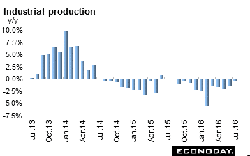 July industrial production was unchanged in July and down 0.5 percent from the same month a year ago. Expectations were for a monthly increase of 0.8 percent. This could add pressure on the Bank of Japan to take action and ease monetary policy further. Chemicals excluding drugs reversed direction and declined 1.4 percent after increasing 3.8 percent in June. Fabricated metals dropped 3.0 percent after jumping 5.7 percent in June. General-purpose, production & business oriented machinery declined 0.7 percent after increasing 0.4 percent in June. Transport equipment was up 1.2 percent after adding 1.8 percent in June. Electronic parts & devices were up for a second month, this time by 1.5 percent after increasing 1.6 percent in June. Electrical machinery was 1.6 percent higher on the month after increasing 1.1 percent the month before. The government is forecasting August output to jump a monthly 4.1 percent but for September, output is expected to decline 0.7 percent.