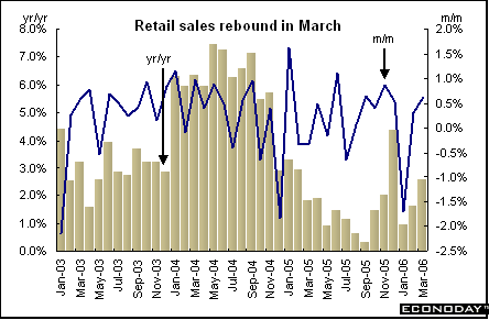 Bank of Canada increased their policy interest rate by 25 basis points to 4 percent Tuesday. This was the Bank's sixth straight 25 basis point increase. The Bank indicated that more increases are in store in order to keep aggregate supply and demand in balance and inflation on target. The Bank's inflation target range is one to three percent, focusing at the two percent midpoint. Despite the Canadian dollar's appreciation, there is little sign that it has slowed the economy very much as demand for commodities stretches those industries to full capacity. The spread between U.S. and Canadian interest rates is 75 basis points - at least until the FOMC meeting on May 10th when the fed funds rate is expected to climb to 5 percent.