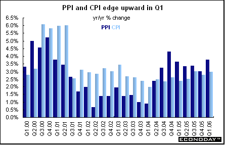 First quarter consumer price index was up 0.9 percent and 3 percent when compared with the same quarter in 2005. Contributing most to the overall increase were pharmaceuticals, up 14.2 percent; vegetables, up 7.9 percent; motor vehicles, up 1.4 percent; hospital and medical services, up 1.4 percent; as well as beer and tobacco, both up 1.4 percent. Among the price declines were deposit and loan facilities, down 2.1 percent; furniture, down 3.2 percent; clothing and footwear accessories, down 3.5 percent; and audio, visual & computing equipment down 1.5 percent.
